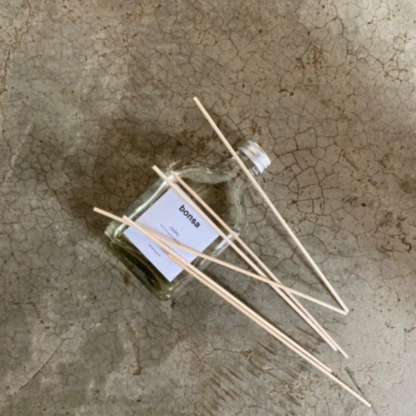 Presentación: envase vidrio con tapa difusora aluminio y varillas de rattan natural.